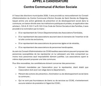 Appel à candidature CCAS